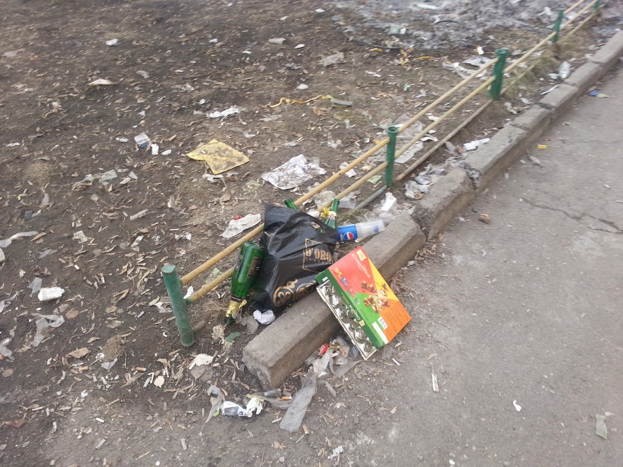 А еще и центр города! В моем микрорайоне, конечно, тоже неидеально сейчас, но все же почище. Давно известно, что чисто не там, где убирают, а там, где не мусорят... Не с неба же этот мусор свалился, сами жители и накидали... Просто свинство.