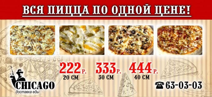 Вчера мы раздали 5 вкуснейших мясных пицц всего по 100 рублей, но, как оказалось, желающих побыть гурманами-экспертами было больше... Сегодня, первым ДЕСЯТИ дозвонившимся с момента публикации этой новости прямо из CHICAGO будет доставлена ВКУСНЕЙШАЯ КУРИНАЯ ПИЦЦА ВСЕГО ЗА 100 РУБЛЕЙ! Позвоните по номеру (83955)63-03-03, скажите "Я хочу пиццу за 100 рублей"!