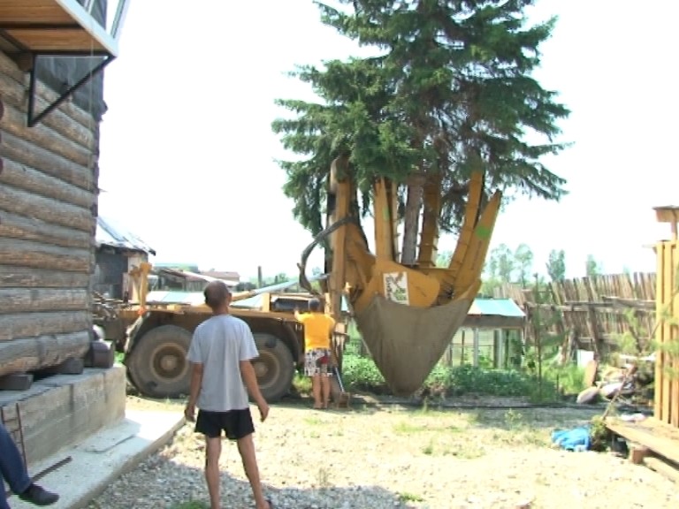 Смех сквозь слезы. Людмила Мукутова пытается шутить, но на самом деле на ее лице глубокая грусть. Женщина прощается с семейной реликвией. С дачного участка вывозят огромную ель. Возраст дерева - почти 40 лет. Его когда-то посадила тетя Людмилы. За годы растение достигло 15-метровой высоты и опасно накренилось в сторону дома. А корни уже принялись разрушать фундамент здания. "Елка наклоняется, боимся, и поэтому решили убрать. На дрова спилить жалко. Объявление перед новым годом в интернет давали, чтобы на новый год куда-то, может, в детский дом или куда-то еще елку забрали. Никто не откликнулся", - рассказывает Людмила Мукутова.