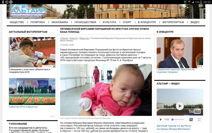Ко мне обратились коллеги с просьбой помочь в распространении информации о маленькой иркутянке - 6-месячной Вирсавии Порошиной срочно требуется операция, которая даст шанс хотя бы на частичное восстановление зрения!!!
