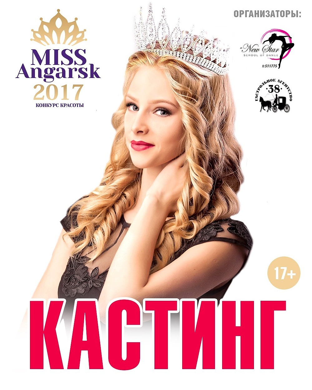 Студия танца «New Star» и Гастрольное агентство «38» представляют! Второй ежегодный потрясающий конкурс красоты "Мисс Ангарск 2017". В прошлом году конкурс собрал восторженные отзывы, и организаторы уверены, что в этом году будет еще круче! На кастинг приглашаются ангарчанки от 17 до 24 лет.