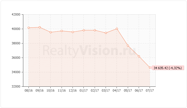Куча новостроек, как пирожки расходятся уже на протяжении 7 лет, и еще много новых строится прям сейчас, и при этом цена все эти 7 лет - 33.000 руб./кв.м. - так что понятно, почему цена снижается, т.к. все с деньгами покупают только нововстройки, а движения на вторичном рынке почти нет, кому нужно старье?... Всякие там хрущевки, А/Б/211 квартала, или старая часть у круглого рынка - это такое все старье, которому по 45...50+ лет..., а от того, что там ремонт ого-го может быть, цена меняться не должна - это старый жилой фонд.