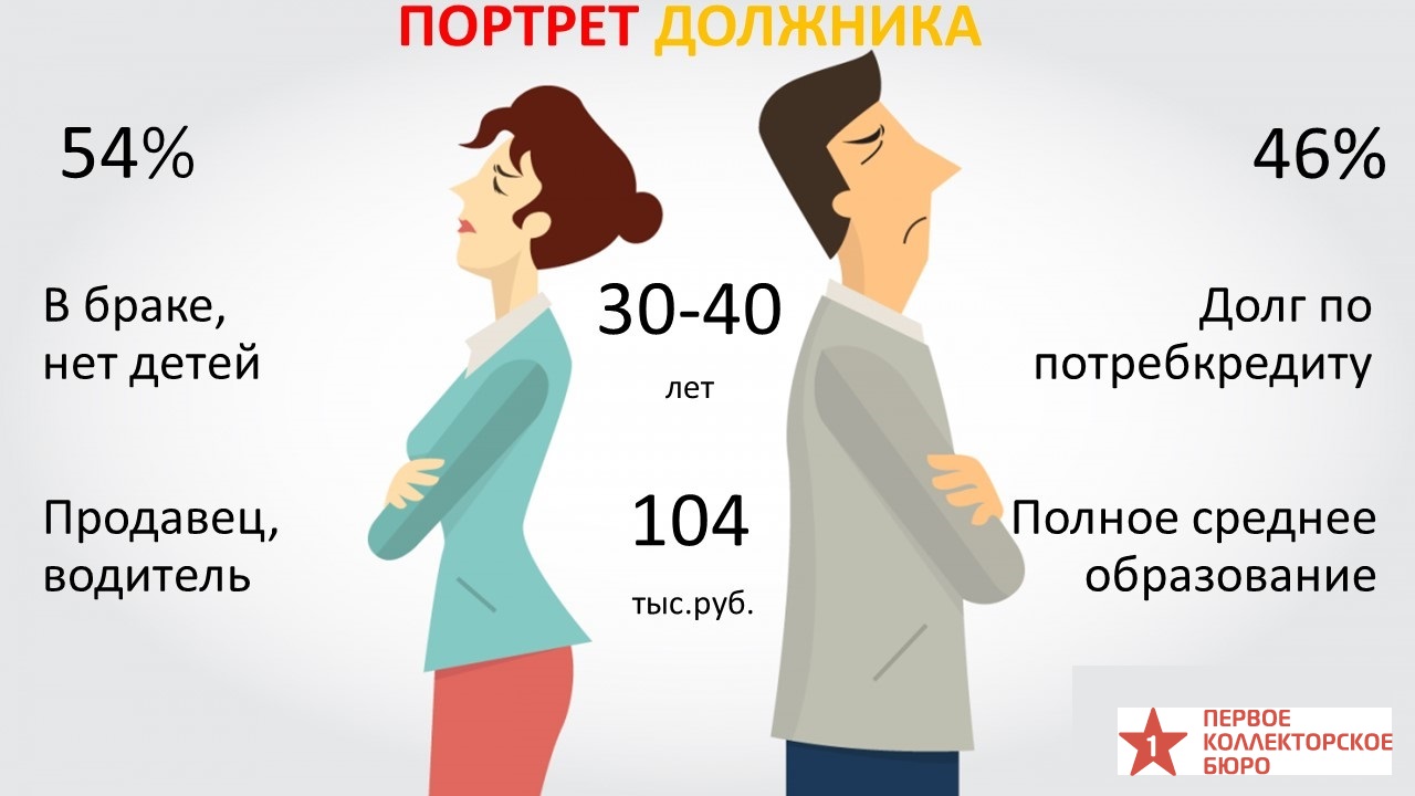 Данные показывают, что 42% должников находятся в браке, 40% — одинокие, 10% — разведенные, 8% на данный момент живут в гражданском браке. При этом у половины должников детей нет, 30% имеют одного ребенка, остальные — двух и более.