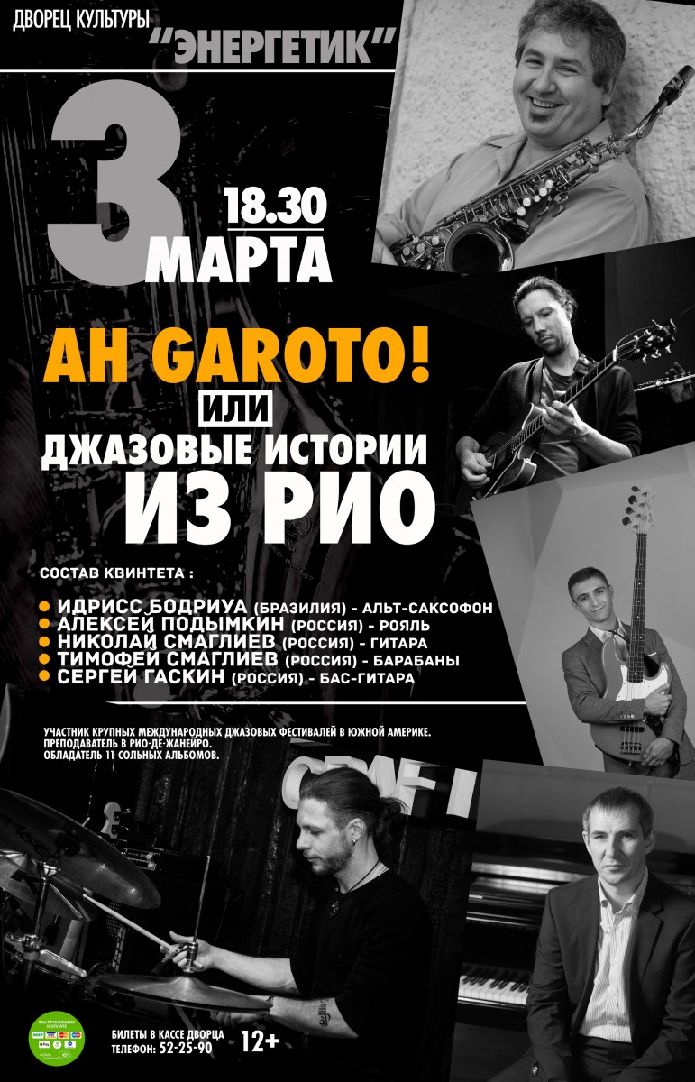 Впервые в нашем городе! Такого вы еще не слышали! Только 1 день!!! Для вас играет джаз, гость из Бразилии Идрисс Бодриуа. Музыка, которая коснется струн Вашей души Билеты уже в продаже! Тел. для справок 52-25-90