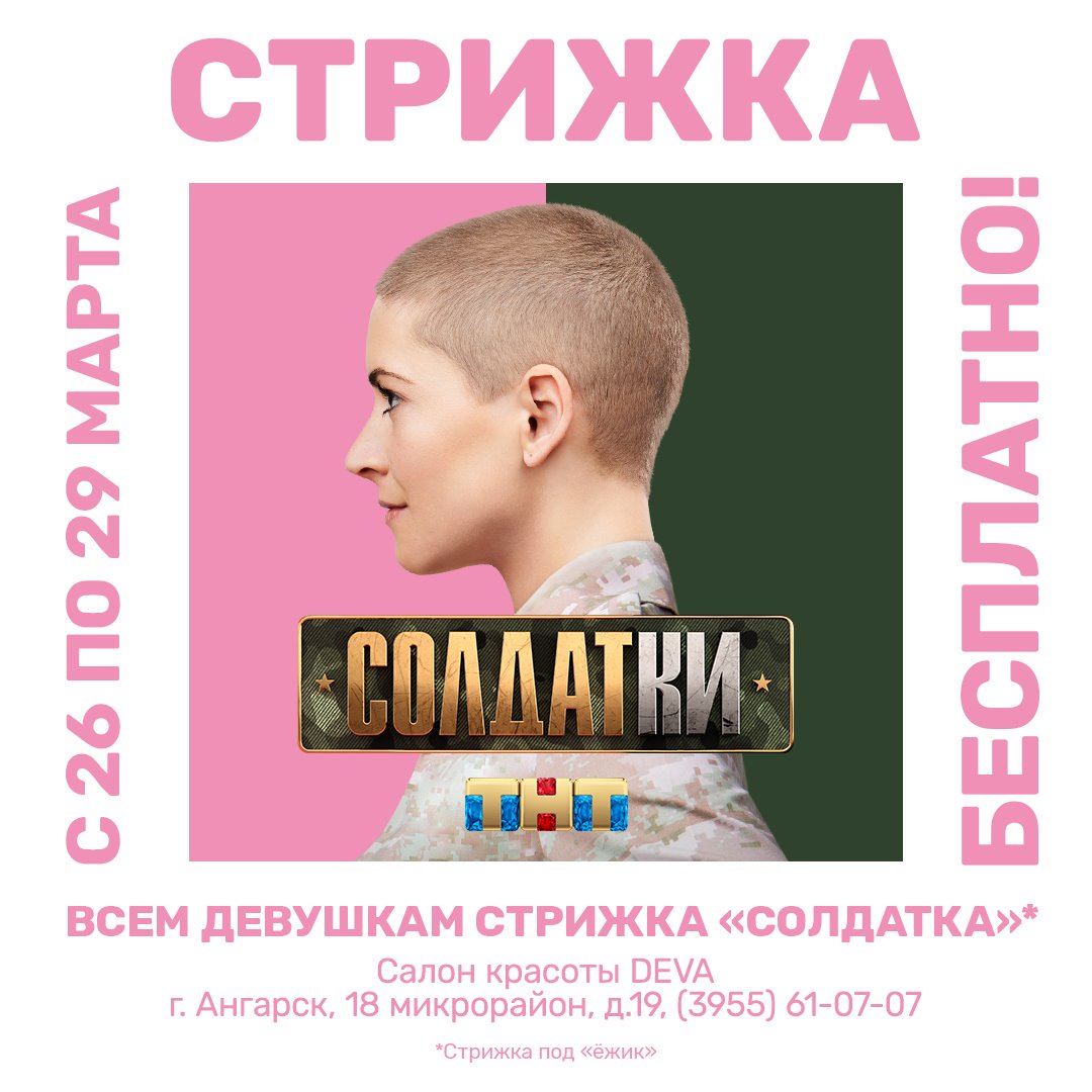 В честь выхода реалити-сериала «Солдатки» телеканал ТНТ совместно с салоном красоты «ДЕВА» в Ангарске устраивают акцию!