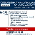 89 новых случаев заражения коронавирусом подтверждено в Иркутской области. По данным оперштаба на 23 августа, общее число инфицированных в регионе составляет 16 273 человека. От COVID-19 скончался еще один пациент.
