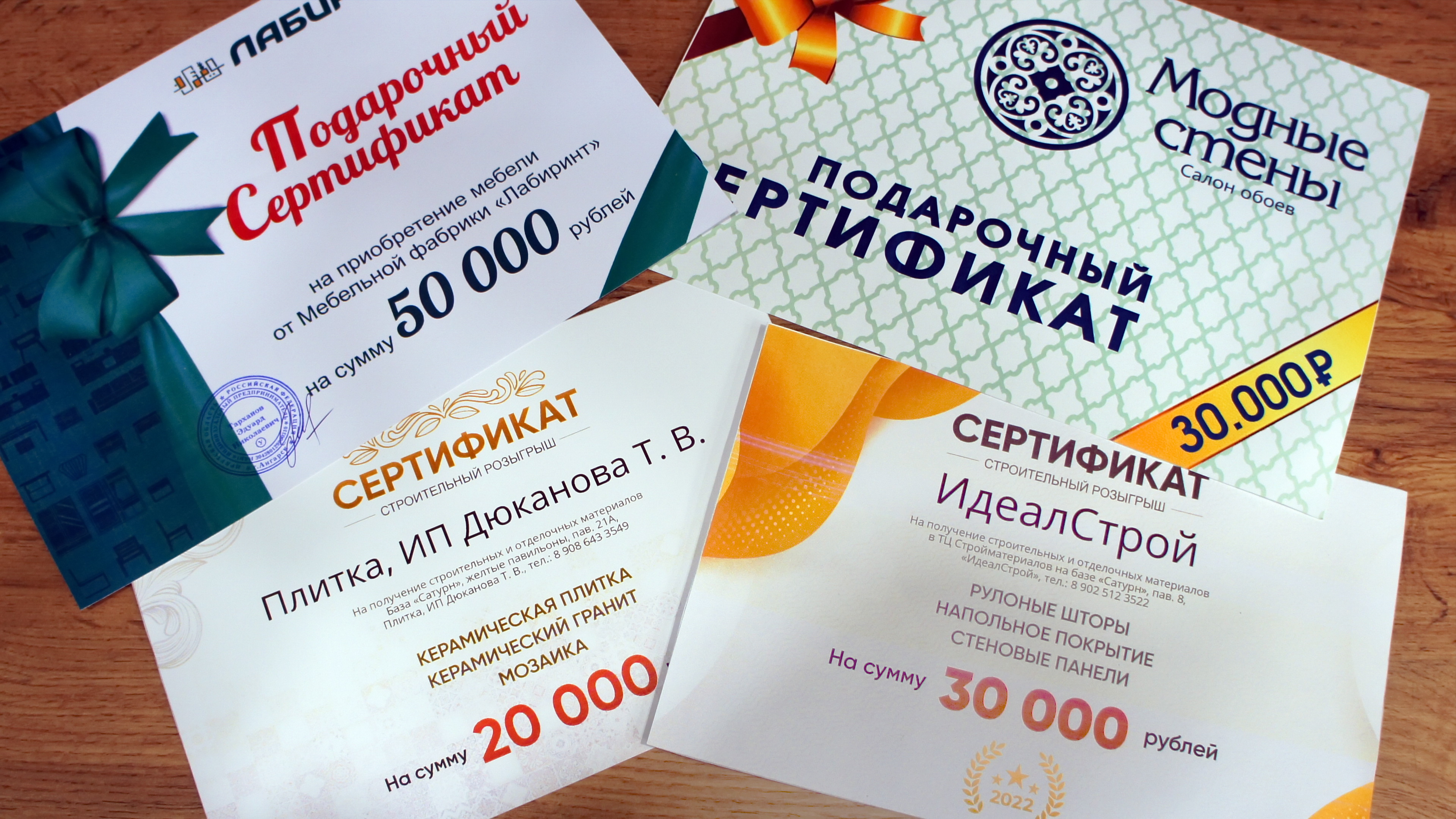 - 2 место - 3 сертификата на сумму 30 000 рублей от магазинов «Фабрика дверей», «ИдеалСтрой», сантехника «Мауро»