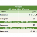 С 27 июля по 5 августа 2022 года в некоторых домах Ангарска будет отключено горячее водоснабжение для ремонтных работ на тепловой сети, чтобы не допустить аварийной ситуации. Точные адреса и продолжительность работ смотрите в таблице.