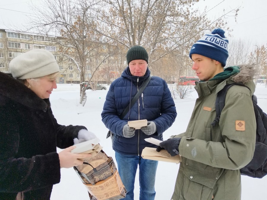 Нагрузившись книгами и как следует закутавшись в шарфы, библиотекари на протяжении пяти дней выходили на улицу и общались с прохожими. Больше всего повезло с погодой сотрудникам Центральной городской библиотеки: в пятницу, 16 декабря, было чуть теплее.