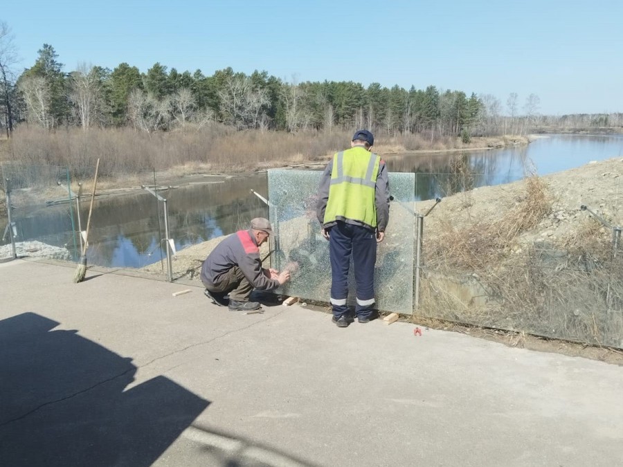 Специалисты муниципального учреждения «Парки Ангарска» начали замену стеклянных ограждений на набережной реки Китой. С осени прошлого года от рук вандалов пострадало более 10 стекол. Их заменят в течение двух дней.