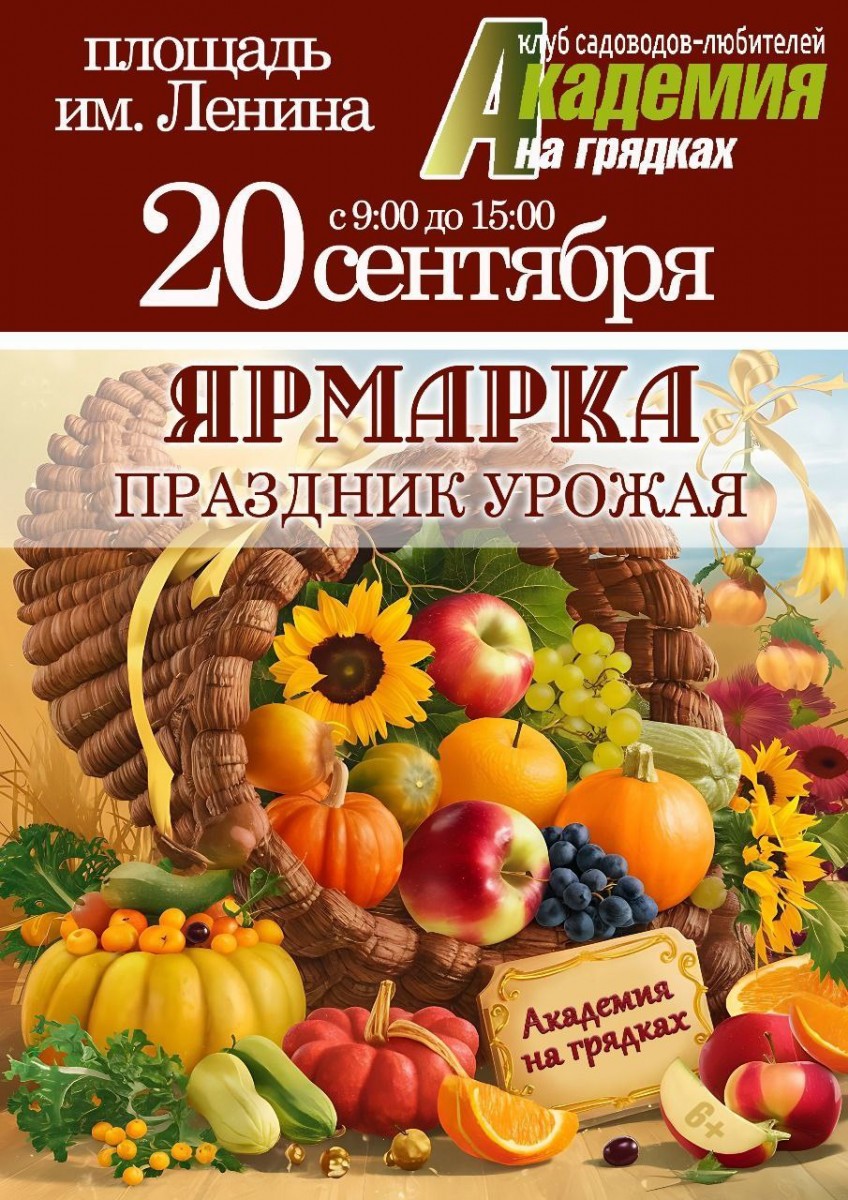 Администрация Ангарского городского округа приглашает ангарчан и гостей города посетить традиционную, ежегодную ярмарку выходного дня «Праздник урожая», которая состоится 20 сентября на площади Ленина с 11.00 до 15.00.