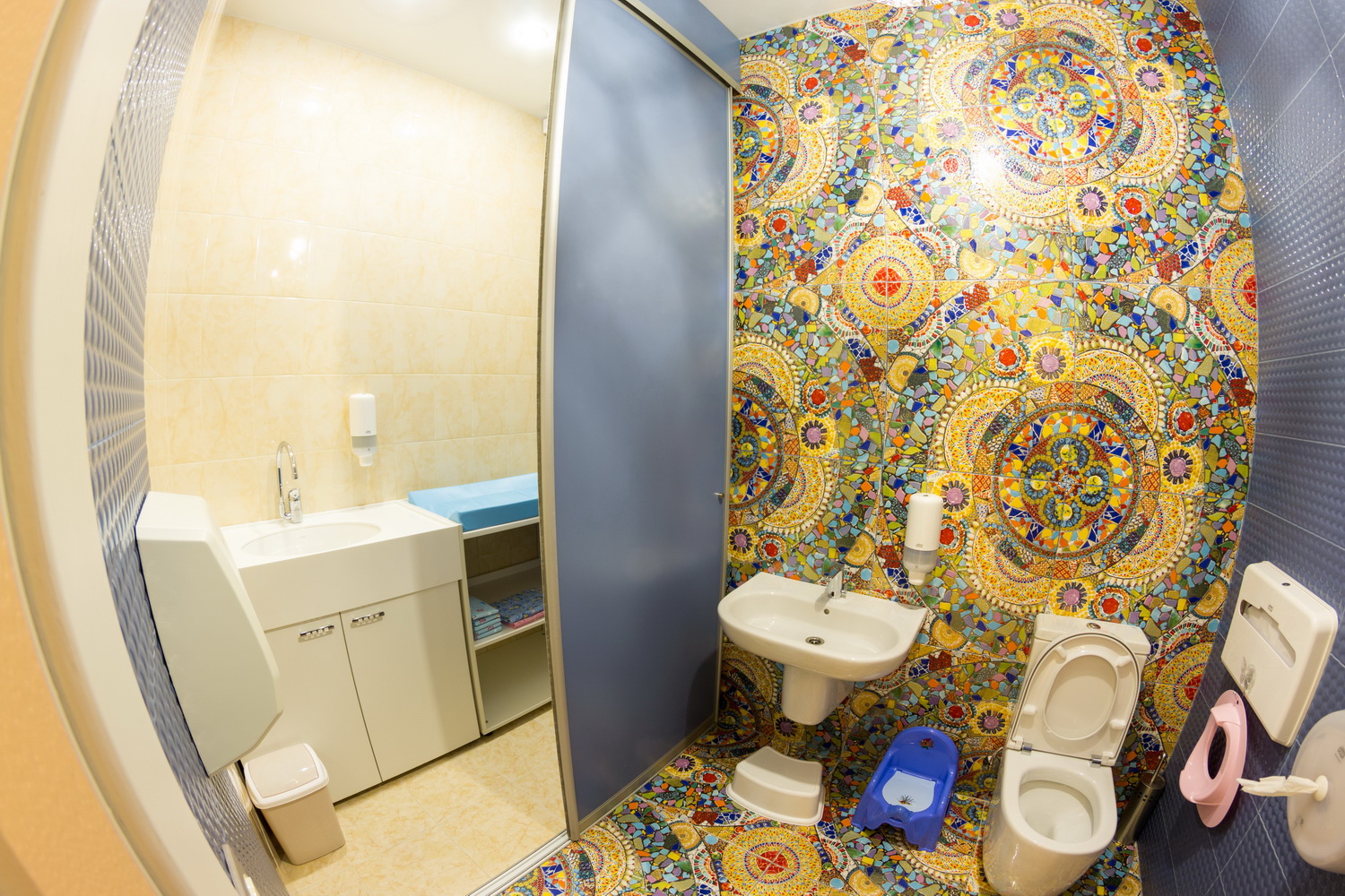 Я и подруга оценили дизайн, и грамотное обустройство туалетов (горшки, пеленальный столик. Это несомненный плюс). И пожалуй все.