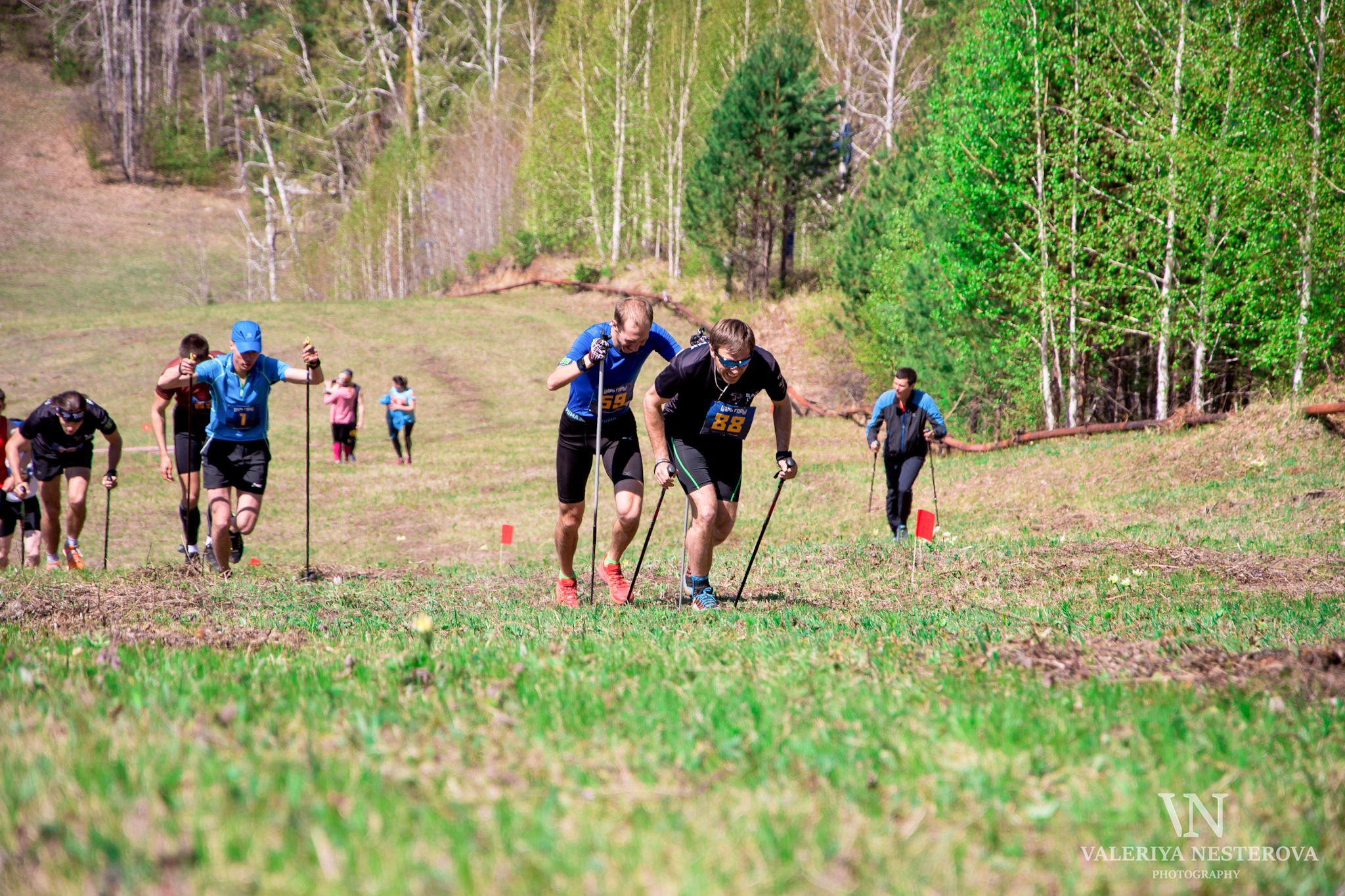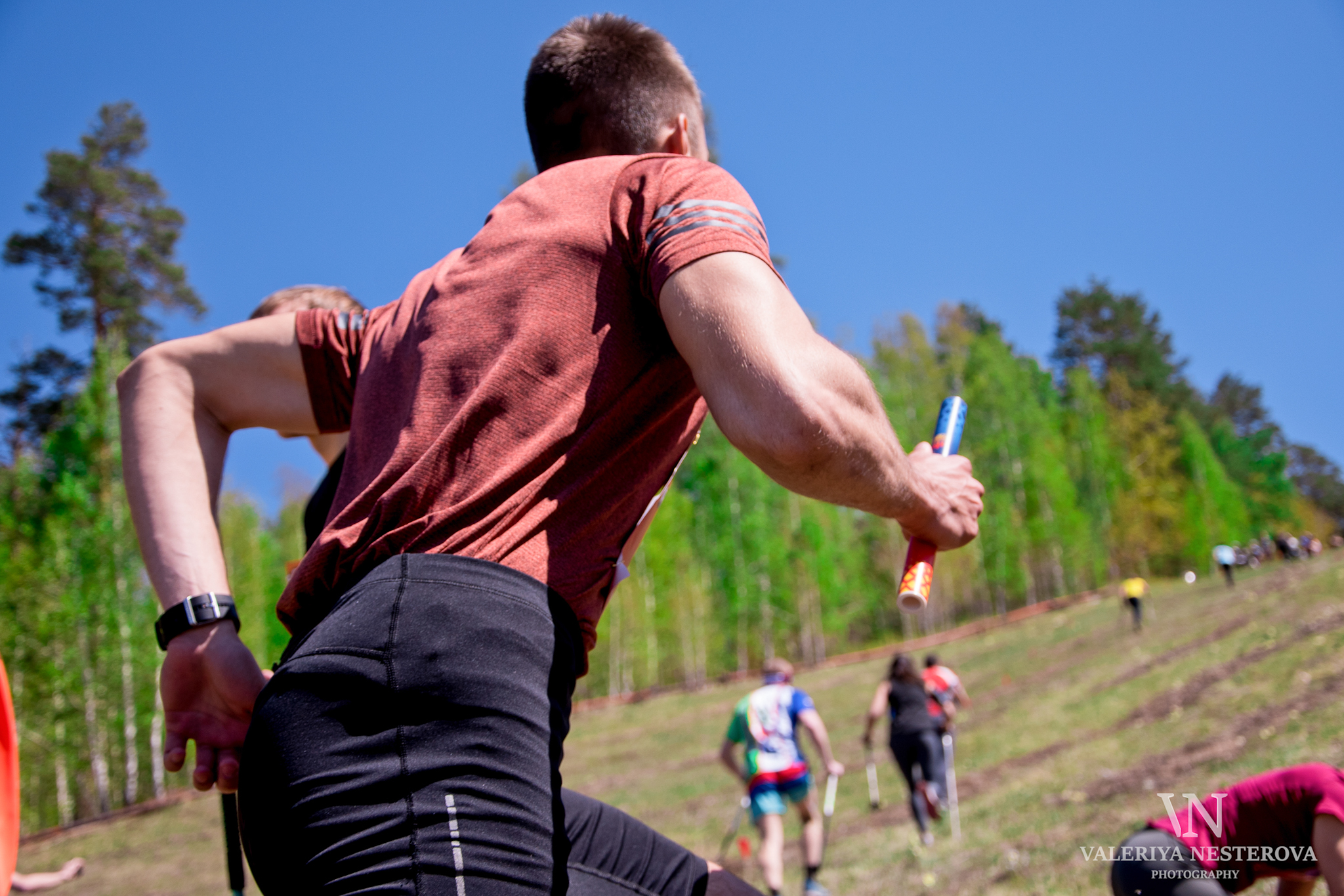 Ровно в 13:00 был дан старт смешанной эстафете. Каждая команда состояла из мужчины и женщины. Этапы участники выбирали сами. Главным вопросом перед стартом был: "Как нести палочку?". Действительно, бежать в гору можно и нужно со специальными палками и держать еще и палочку не очень удобно. Но где наши не пропадали?