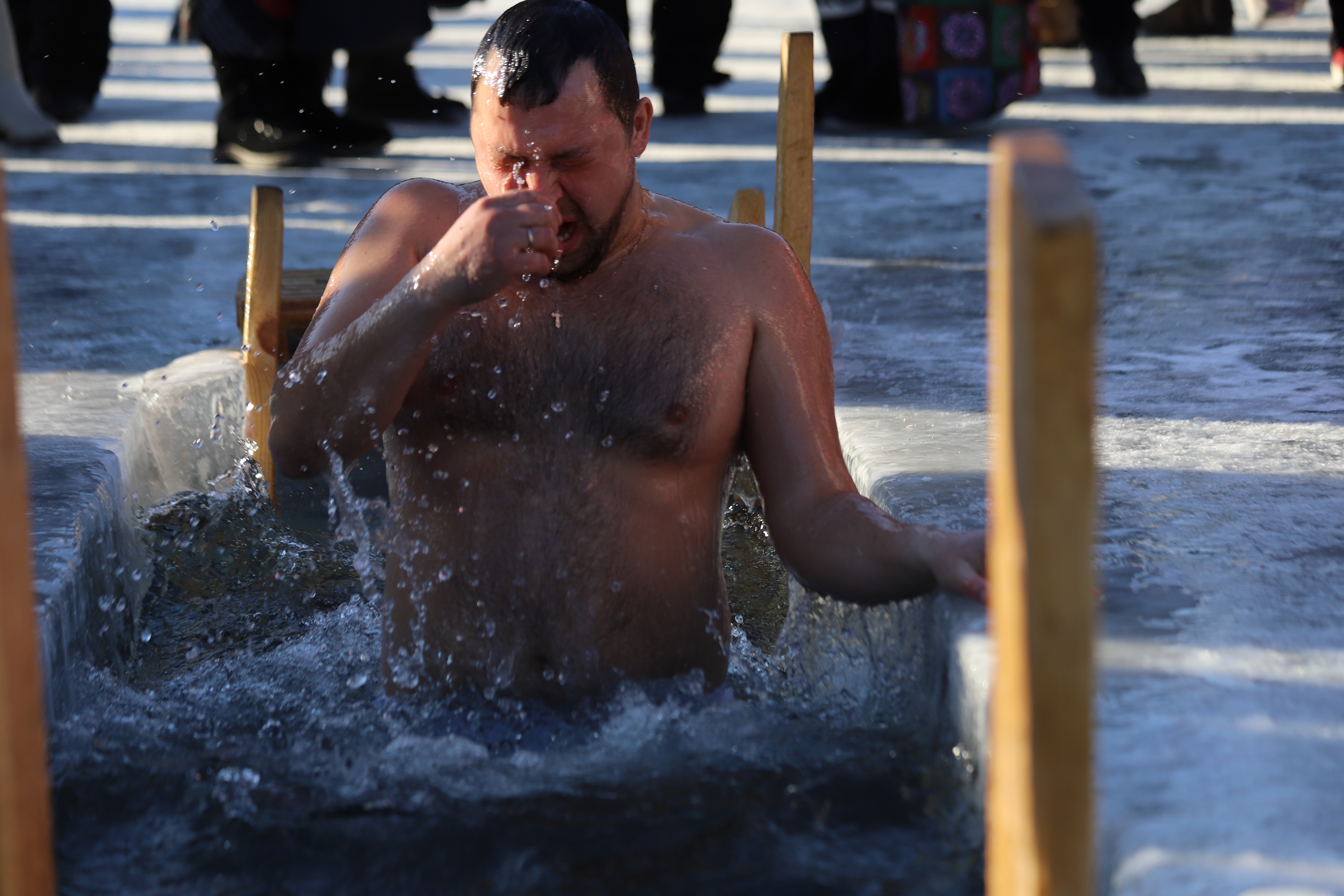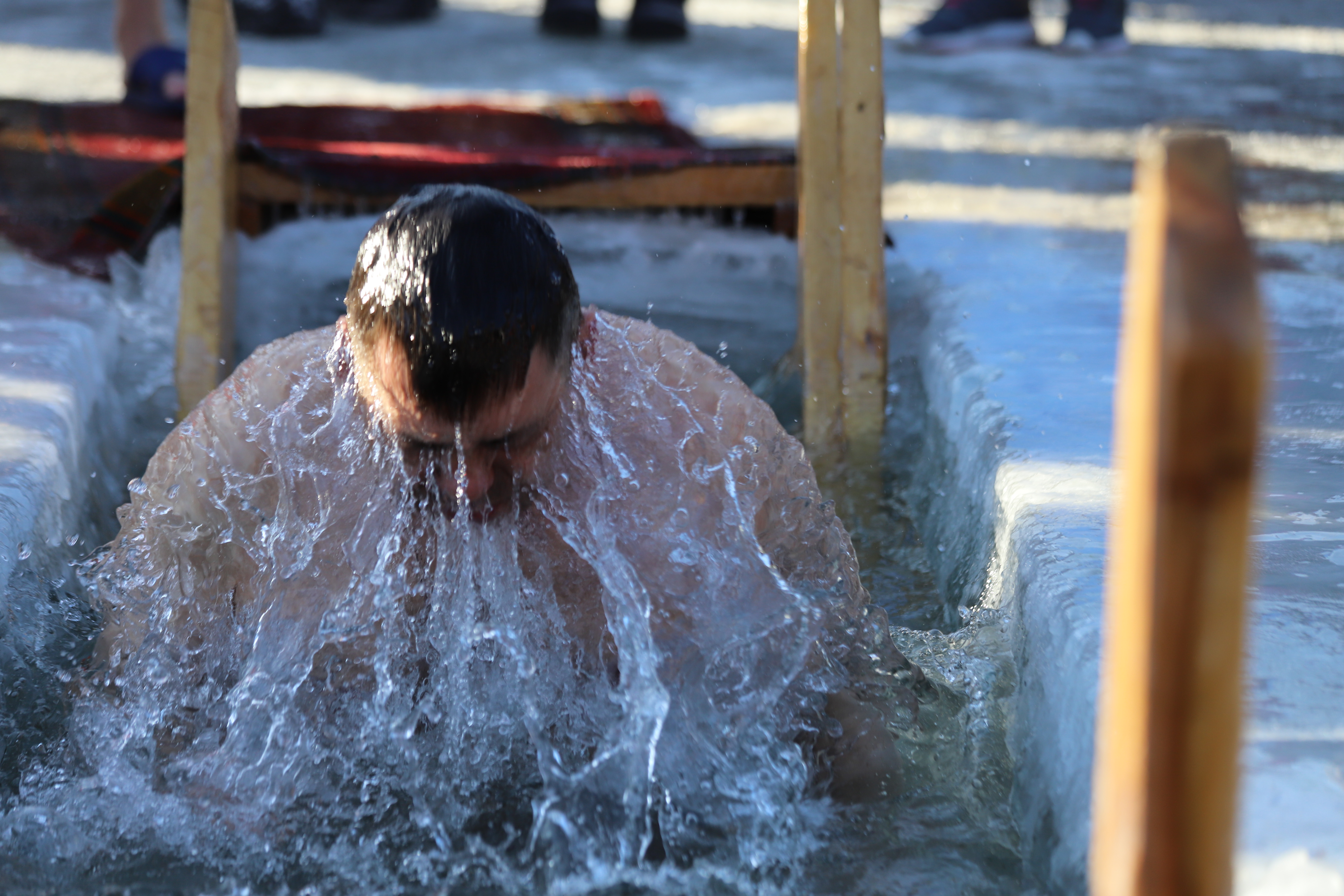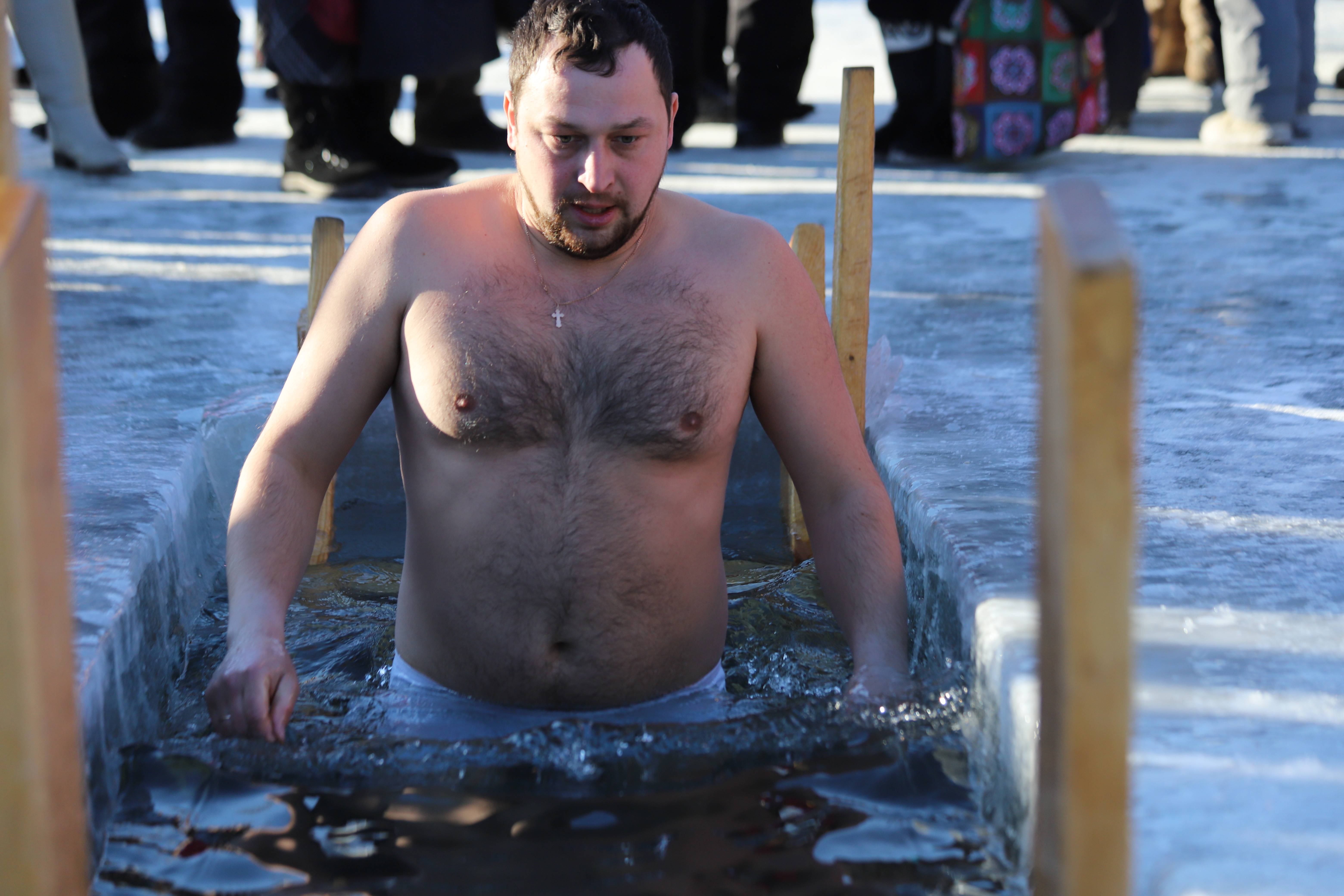 Рядом с четырьмя купелями для удобства горожан была установлена палатка для переодевания. Все желающие могли отогреться бесплатным горячим чаем и перекусить. Неподалеку оборудовали парковку.