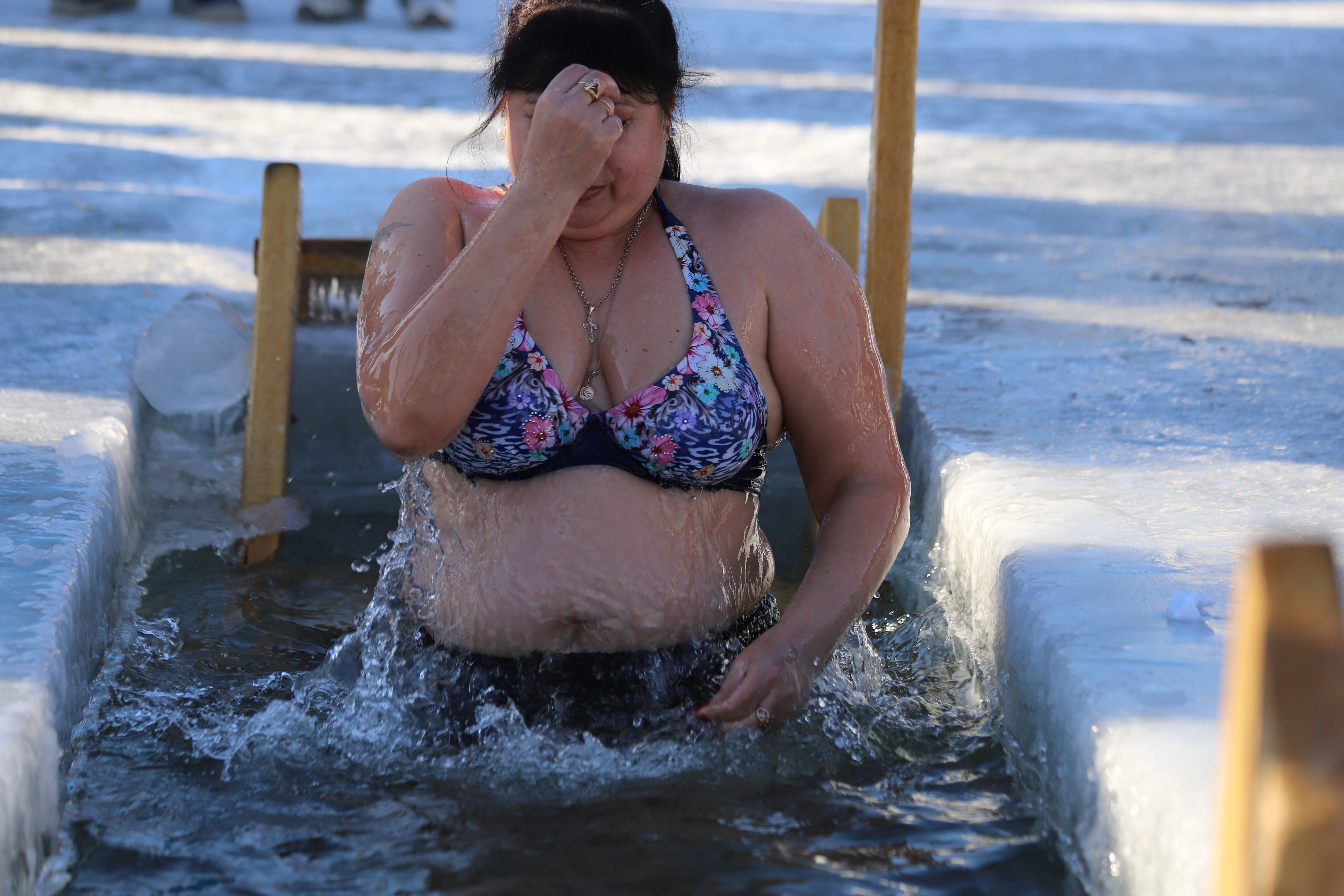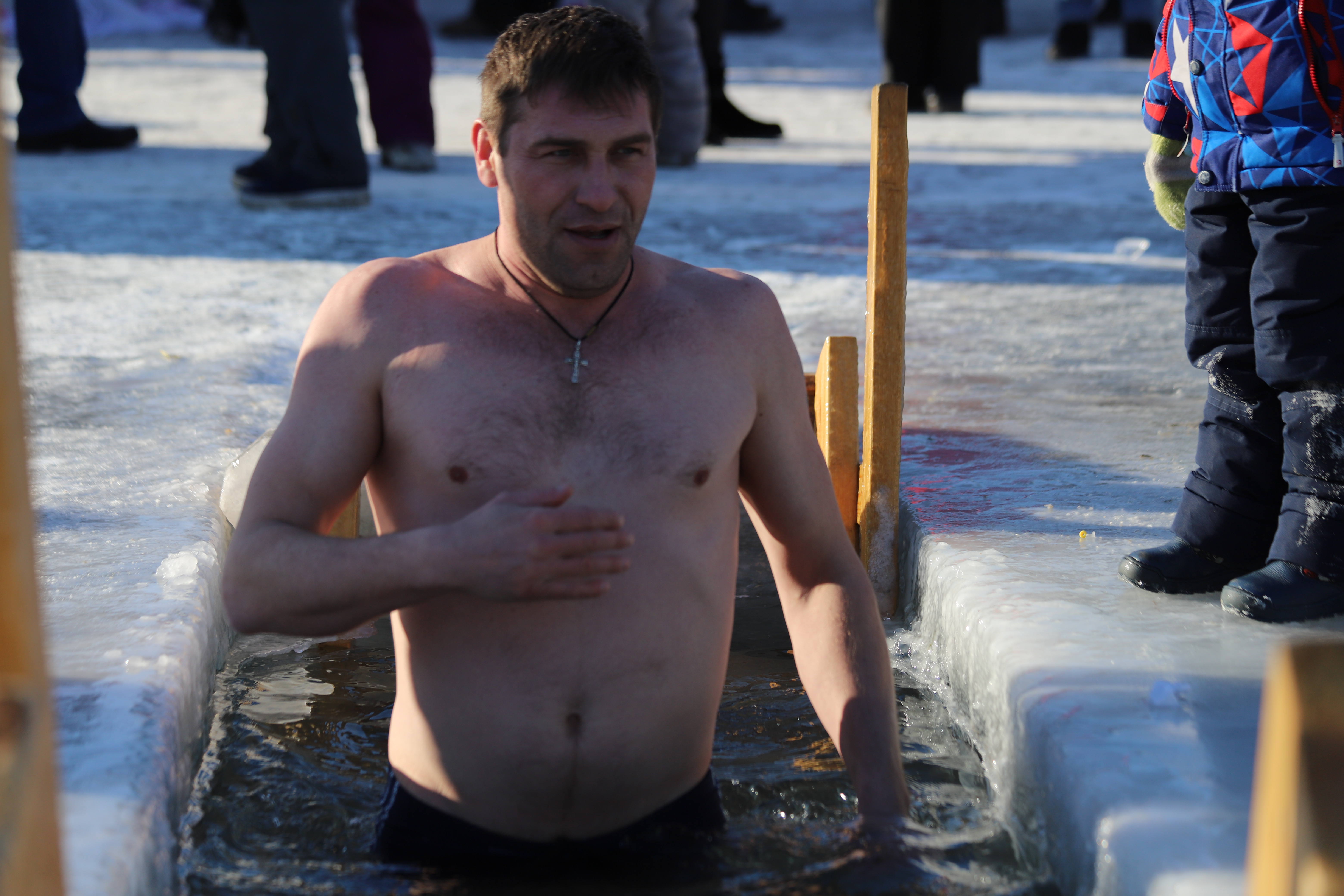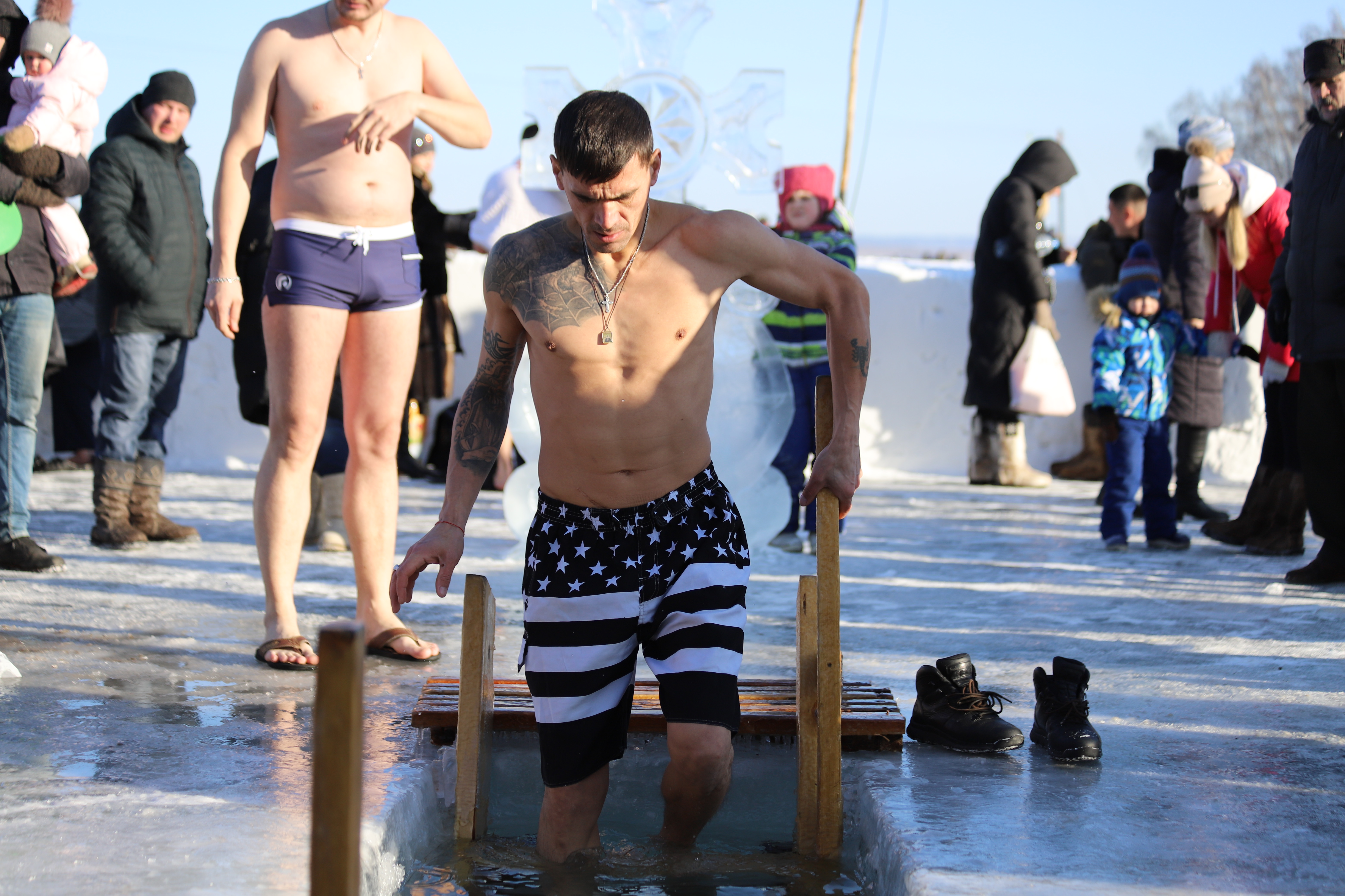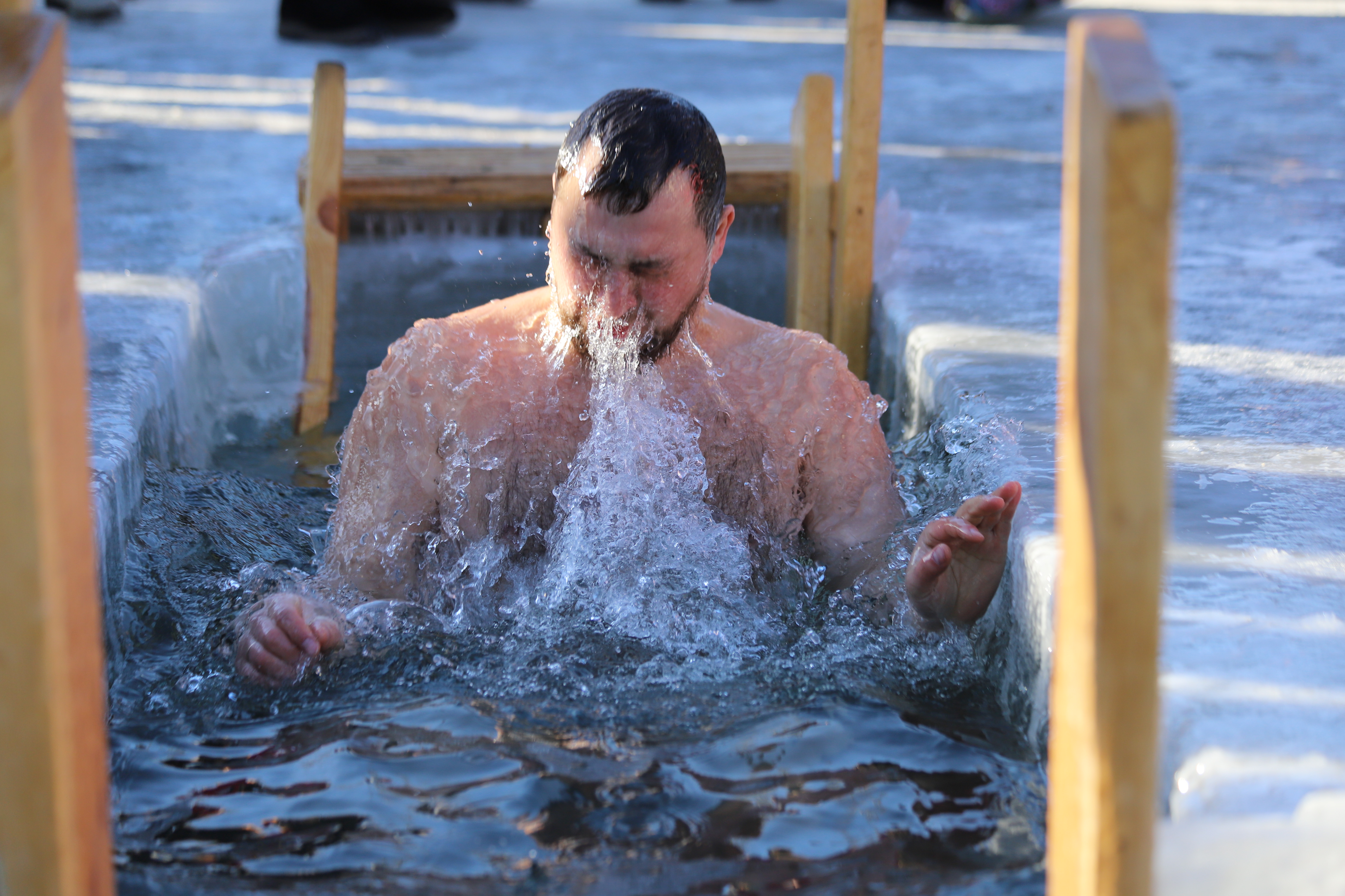 Рядом с четырьмя купелями для удобства горожан была установлена палатка для переодевания. Все желающие могли отогреться бесплатным горячим чаем и перекусить. Неподалеку оборудовали парковку.