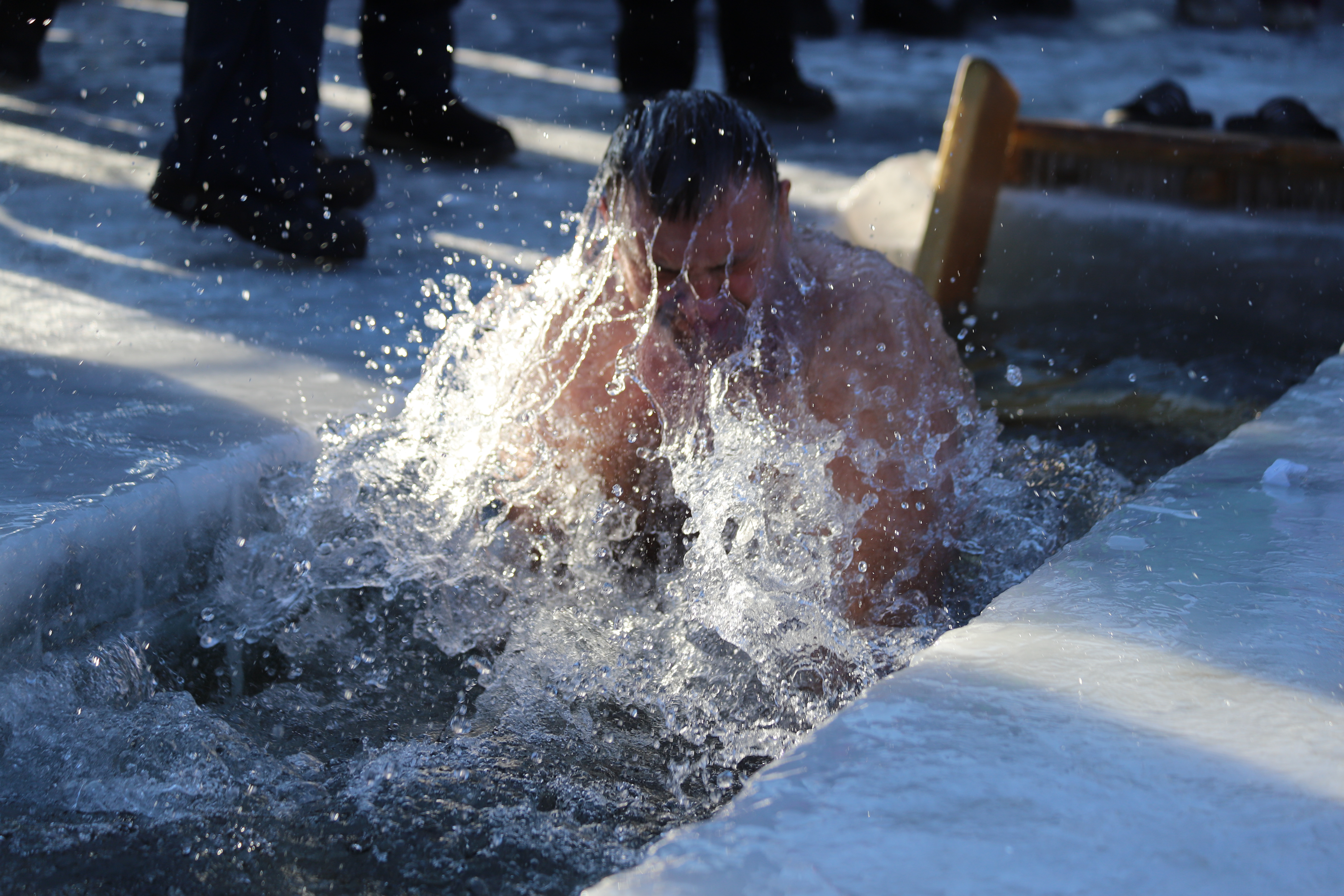 В этот праздничный день все желающие смогли окунуться в прорубь и набрать крещенской воды.