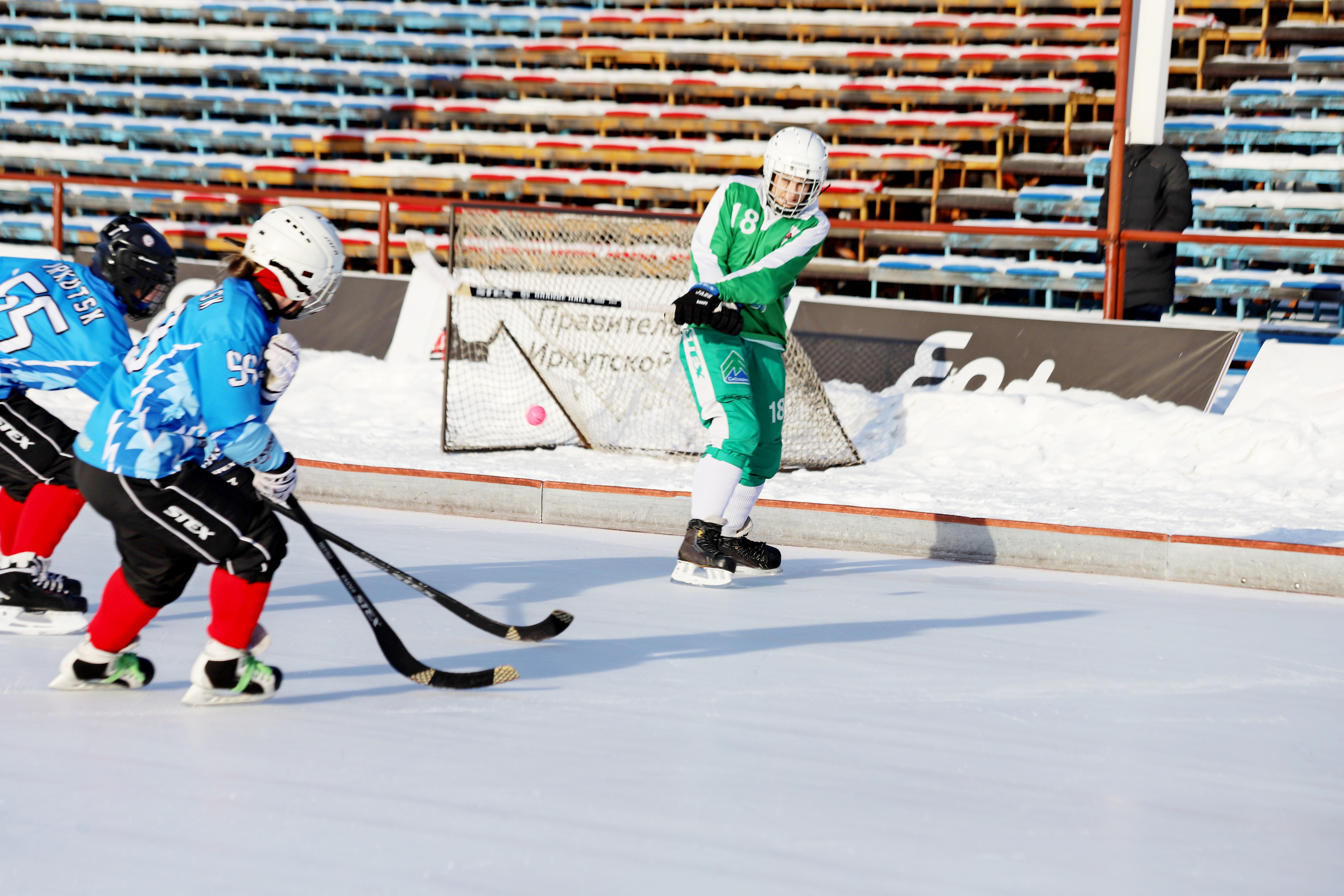 На иркутских стадионах «Рекорд» и «Зенит» с 4 по 9 февраля проходит чемпионат России по хоккею с мячом среди женских команд. Победитель определится в круговом турнире.