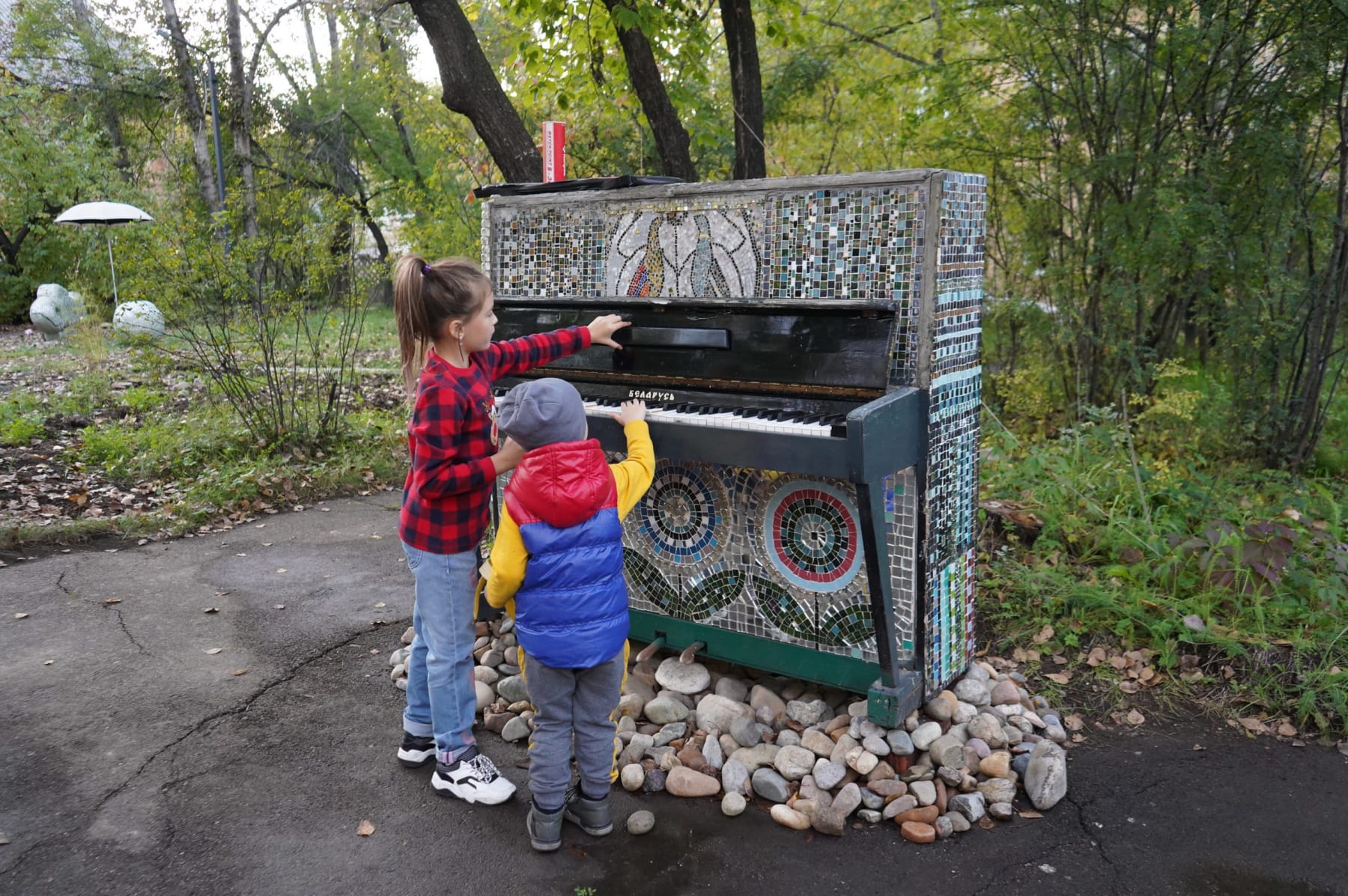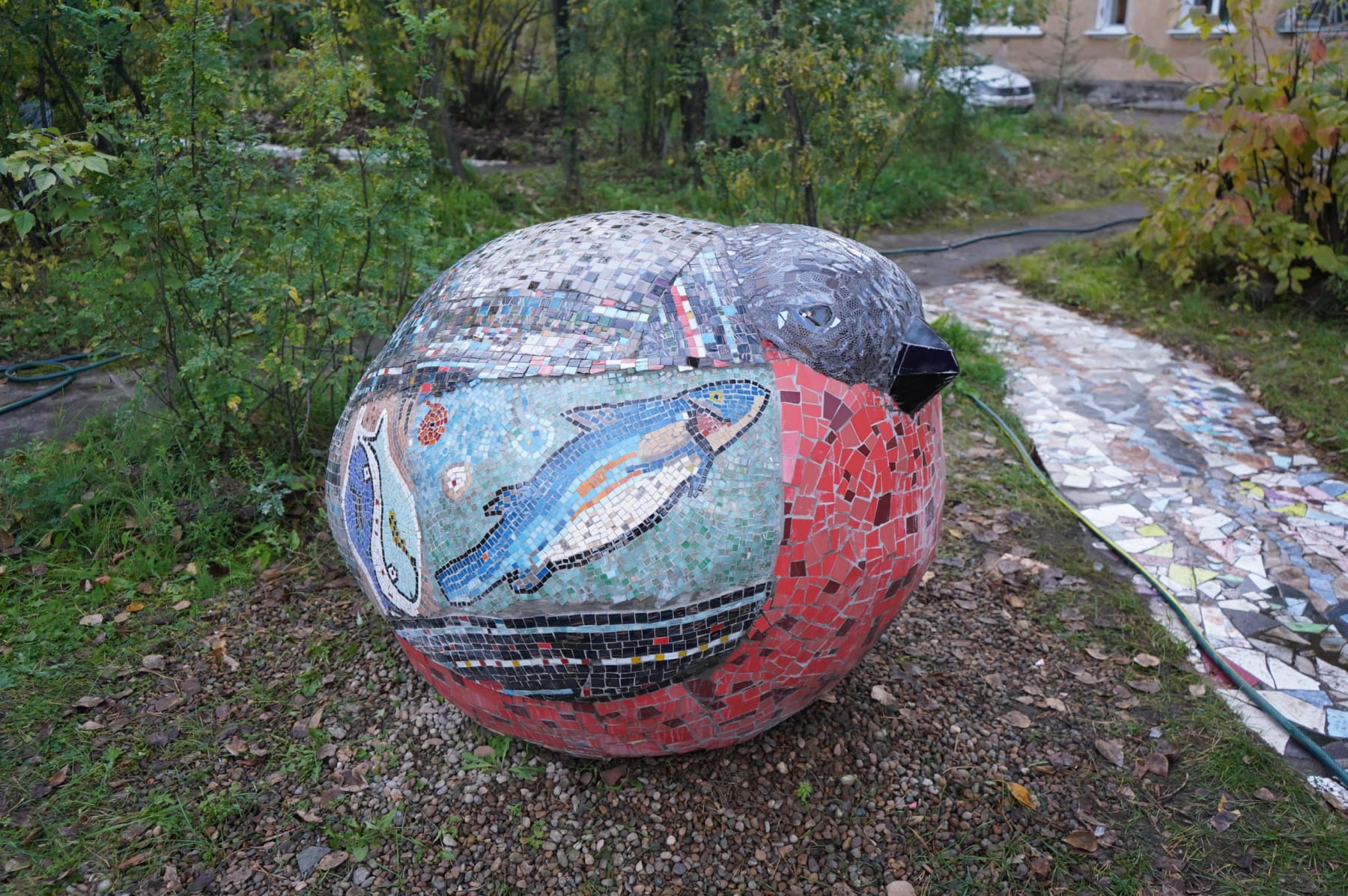 Мозаика-парк «Сказки Байкала» появился в одном из тихих ангарских двориков на улице Маяковского, на территории ремесленных мастерских благотворительного фонда «Близко к сердцу». Реализовать проект удалось на средства президентских грантов.