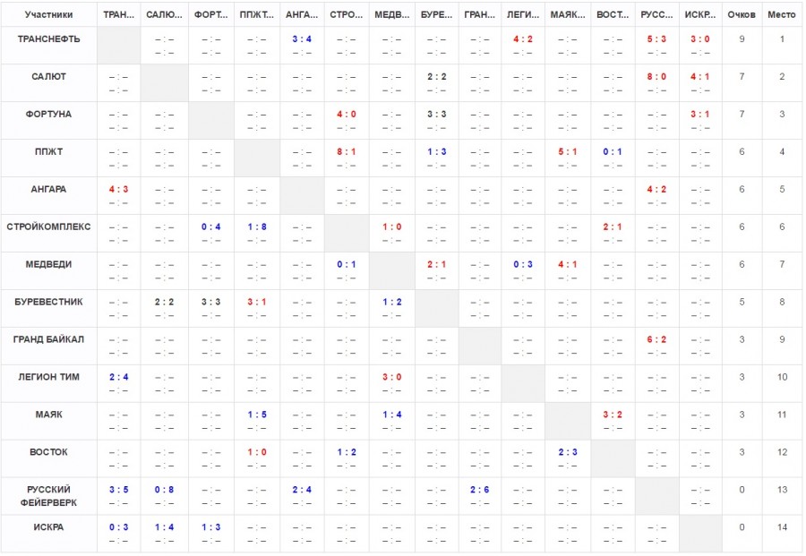 По набранным очкам лидируют молодые футболисты Гранд Байкала. Они уже сыграли все свои матчи первого круга