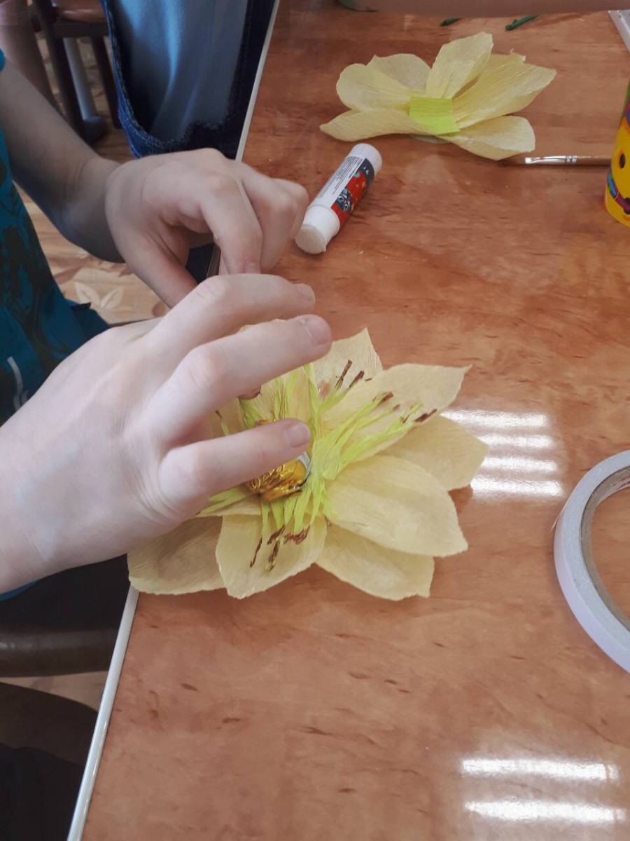 В субботу 3 марта 2018 в центре помощи детям проводили мастер-класс "Цветы из конфет". |