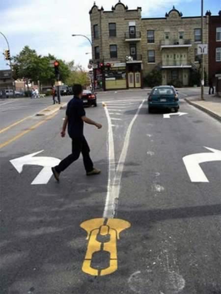 На дорогах Монреаля появилась странная разметка. Позже выяснилось, что это была своеобразная попытка призыва к аккуратному вождению художником Питером Гибсоном (Peter Gibson) и с целью обращения внимания к ущемлению интересов велосипедистов и пешеходов, акция в итоге все-же привела автора к штрафу и семи дням общественных работ.